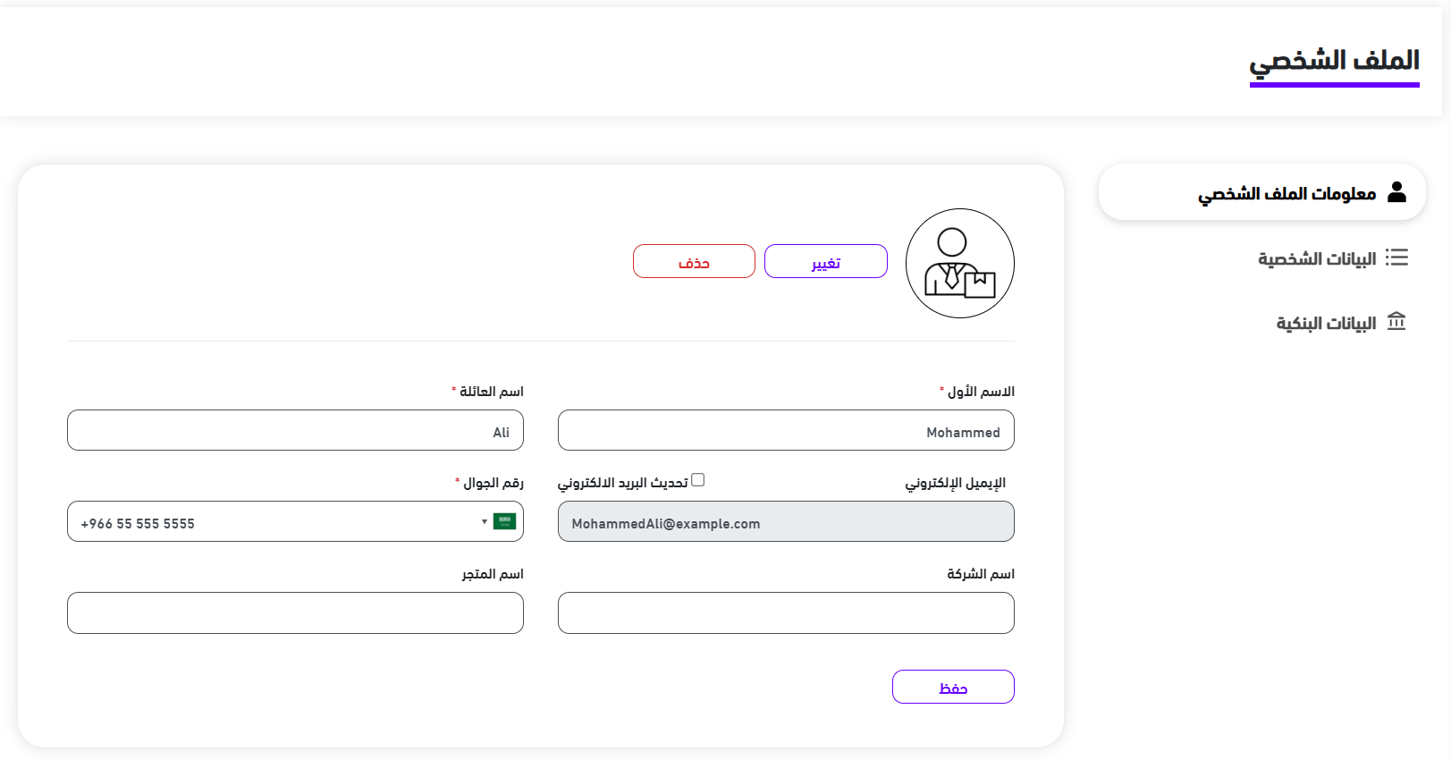 يمكنك تعديل المعلومات الشخصية والبنكية لاحقًا باتباع نفس الخطوات الموضحة أعلاه.