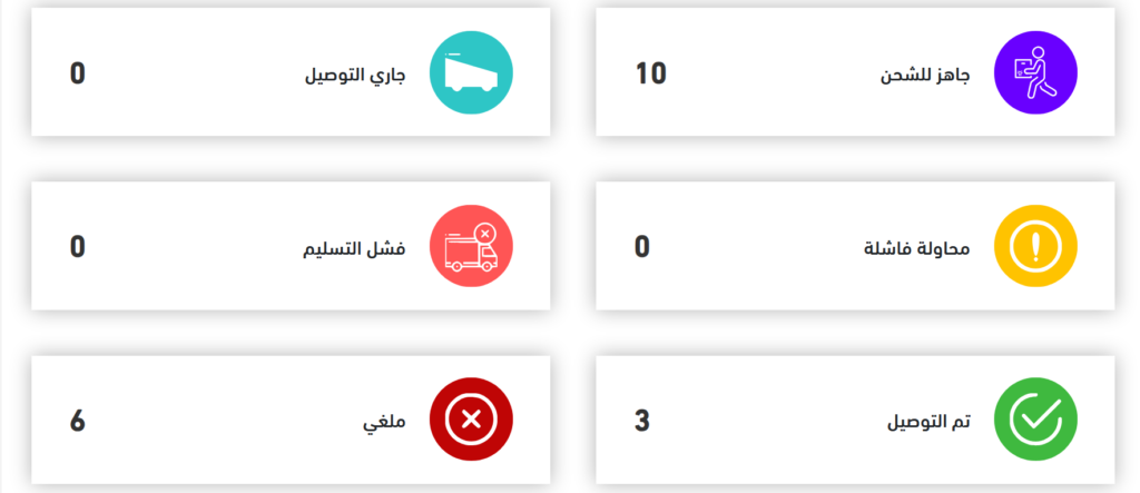 | فشل التسليم | بعد ٣ محاولات فاشلة، تصبح الشحنة في هذه الحالة ويتم إرجاعها إلى المستودع. |
